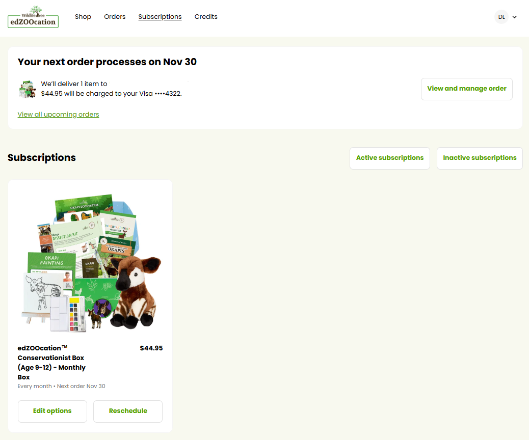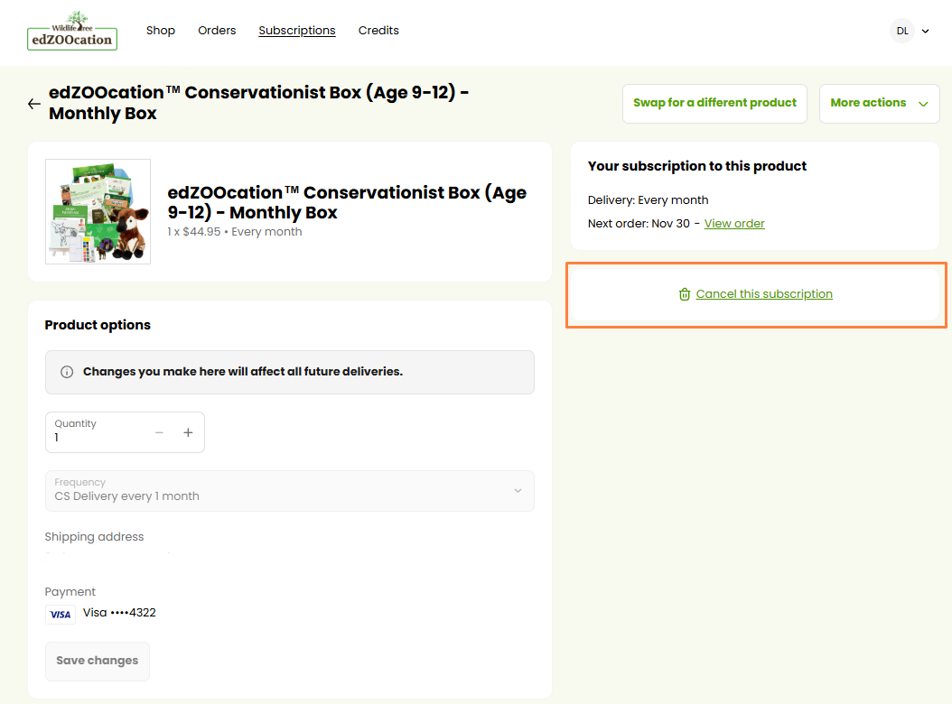 *Please note that canceling a prepaid subscription will not automatically cancel existing orders. Please get in touch with support if you want to cancel your existing prepaid orders. Canceling a prepaid subscription will restrict your portal access, so you can no longer modify your subscription shipping address, box shipment date, and view add-ons.